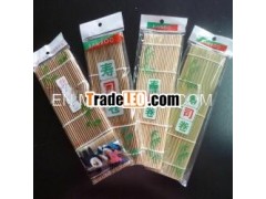 Bamboo mat iswidely used in rolling sushi. There are different sizes here. For example21cmx24cm, 24cmx24cm, 27cmx27cm. And we also make craft bamboo matwith bigger size.