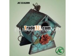 Blue cracks painting garden decorating small wooden bird house1. Material: Wood & metal