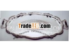 Brass serving tray with high quality silver plating and beautifuldesign made by etching process.NTI having about 35 suppliers, who are specialize in doingsilver plating products.