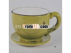 Ceramic green cup and saucer for home decoration