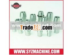 SYZMACHINE weld-in threaded tube adapters are perfect for construction of linkage and suspension components. Adapters are CNC machined 4130 chromoly to precise tolerances with a jewelry quality finish. Left hand tube adapters are marked with grooves for easy identification during assembly. Left hand tube adapters with hex option also available in select sizes.