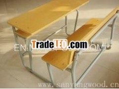 Material:1)the top of desk and chair is melamine faced particleboard 2)the frame is metal pipe frame which is powder coatingdouble seat SCHOOL FURNITURE for children use