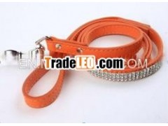 Fashion Diamond Studded Plain Dog Leather Leash
