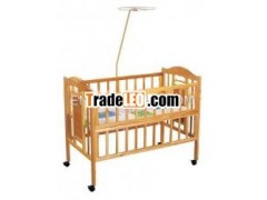 Baby wooden bed with lovely design.Crafted from reasonable pinetreesolid sidesConvertible wheels for safety and movement.