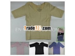 high quality solid color ladies shape wear stocklots F7308A polyester half-sleeve shape wear stocks