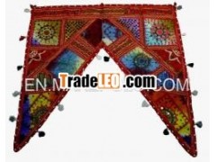Home Decorative Indian Red Sequin Beaded Mirror Work Embroidered Window Valence Door Hanging Bandhan