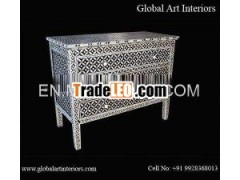 Indian Inlay chest/cabinet in Indian style made of bone inlay workmounted on wooden handicraft with geometric designProduct Name: Indian Inlay Chest