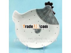 Newly designed white chicken shaped 8" ceramic plate