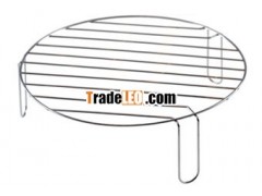A round chrome coated oven rack with three 100mm legs