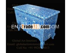 Item Description: Royal Blue MOP Inlay Chestof Drawer in Indian style made of mother of pearl inlay workmounted on wooden handicraft with floral design.