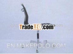 -Black fabric mesh material upholstery; -Polished die-castchromed aluminum alloy base and frame; swivel mechanism; four-starbase with fixed tips.