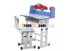 Description | 1.Desk top:16mm particle board with melamine 2.Chair top:16mm particle board with melamine 3.Steel frame:rectangular tube:25*50*0.5mm, 20*40*0.5mm 202*0.5mm. 4.Treatment of the tube surface :acidwash→bonderizing→drying→spray painting 5.Size:desk:690*450mm. 6.The height is adjustable. |