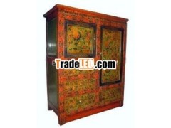 A traditional furniture tibetan style has three doors andthree drawers .