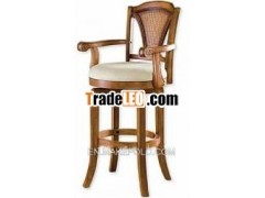 V-shape accented cane Arm Stool, soid wood antique swivel armed barstool